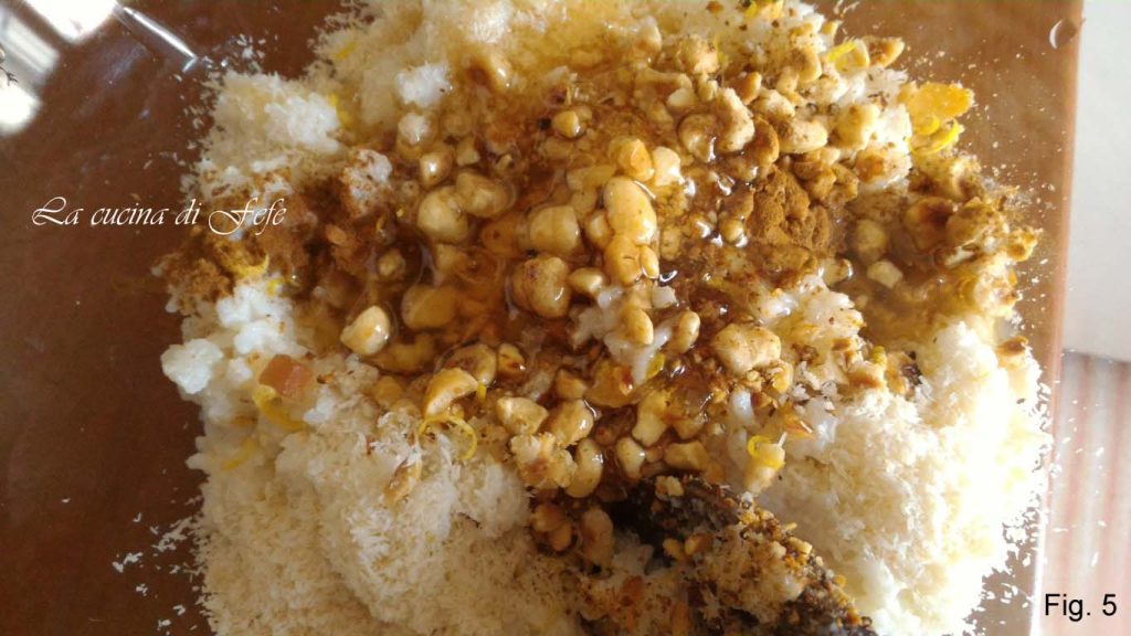 • Pasado este tiempo, añade el sirope de arroz*, las frutas confitadas, las avellanas tostadas y picadas, la cáscara de limón rallada, la canela y el coco rallado.