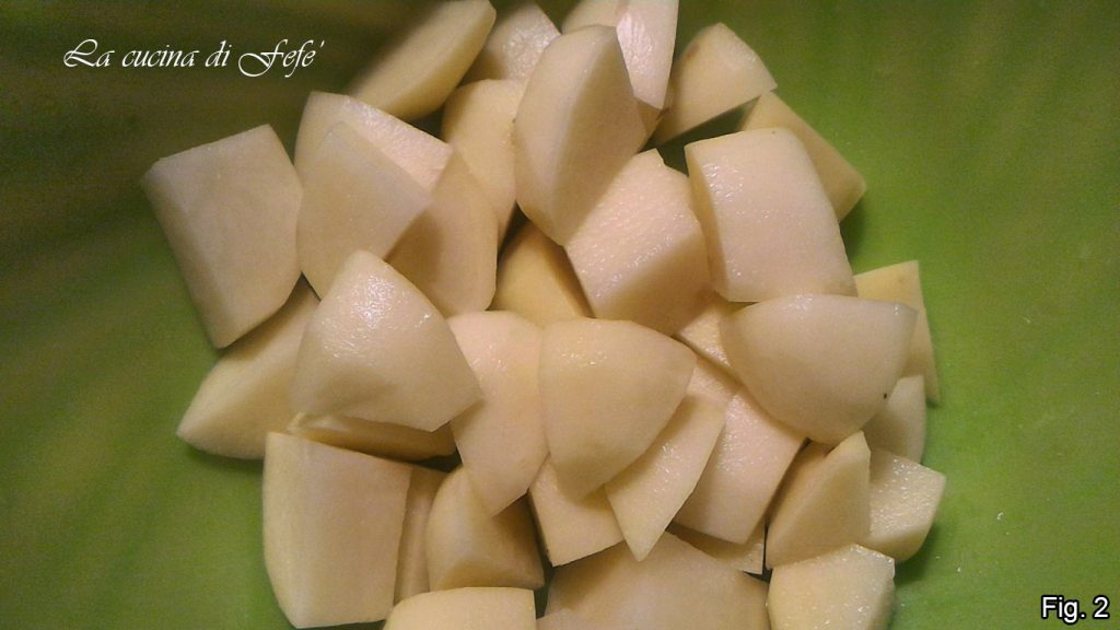 Lavad y pelad las patatas, luego cortadlas en trozos (fig. 2).