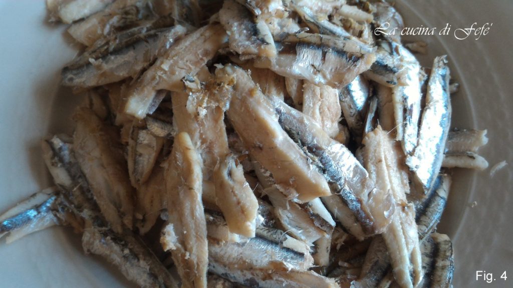 Procede a destripar las anchoas, quitándoles la cabeza, luego ábrelas por la mitad, eliminando cuidadosamente la espina central y la cola y lávalas bajo agua corriente. Si no estás acostumbrado, pide a tu pescadero de confianza que haga este procedimiento.