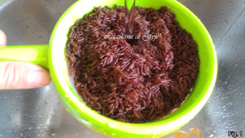 Comenzad enjuagando abundantemente el arroz bajo agua corriente, ayudándoos con un colador (fig. 1).