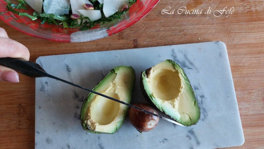 Lava y corta los aguacates a la mitad, eliminando el hueso interno con la ayuda de un cuchillo.
