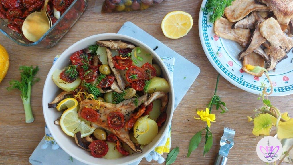 • Y voilà… ¡la ensalada de patatas, setas cardo asadas y tomates secos está lista para ser disfrutada!
