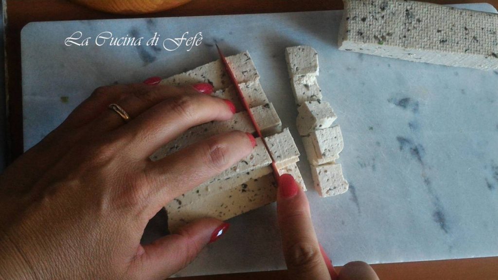 • Corta el tofu en dados con la ayuda de un cuchillo.