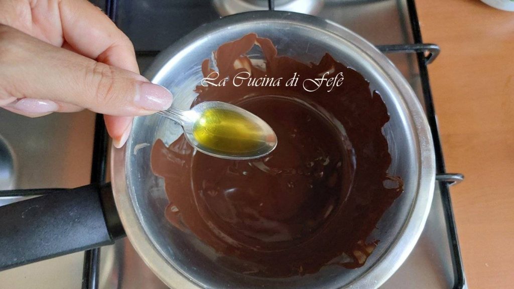 Mientras tanto, rompe el chocolate en trozos regulares, llena un cazo con agua caliente y coloca encima un bol más pequeño que contenga el chocolate.