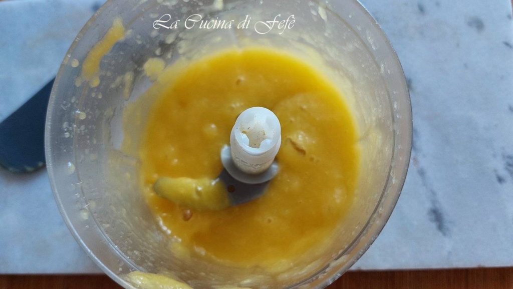 Añade aproximadamente 150 gr. de mango triturado del total y mezcla hasta obtener una crema homogénea.
