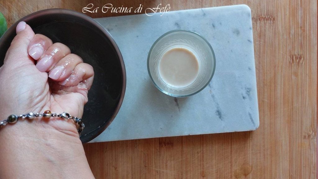 Mientras tanto, pon a rehidratar 4 gr. de hojas de gelatina en agua fría durante 10′.
