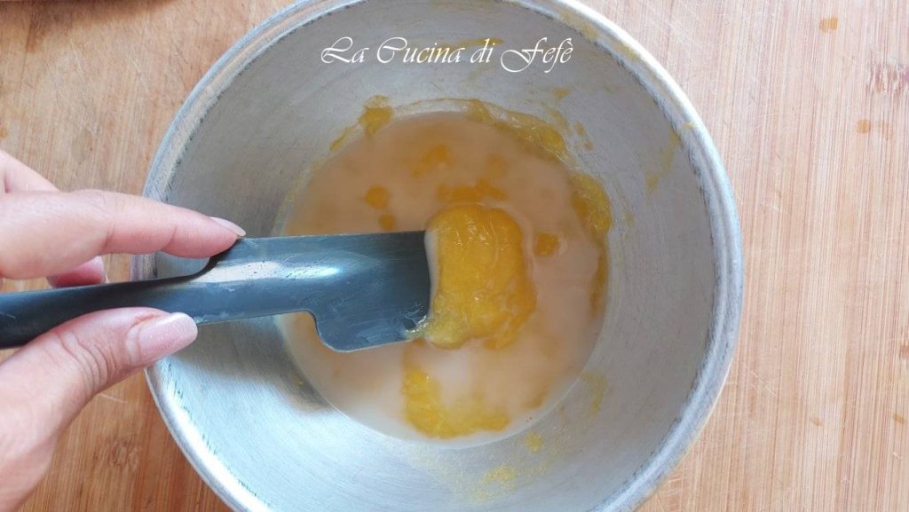 Añádela a los 50 gr. de mango triturado que dejaste a un lado y mezcla bien con una espátula.