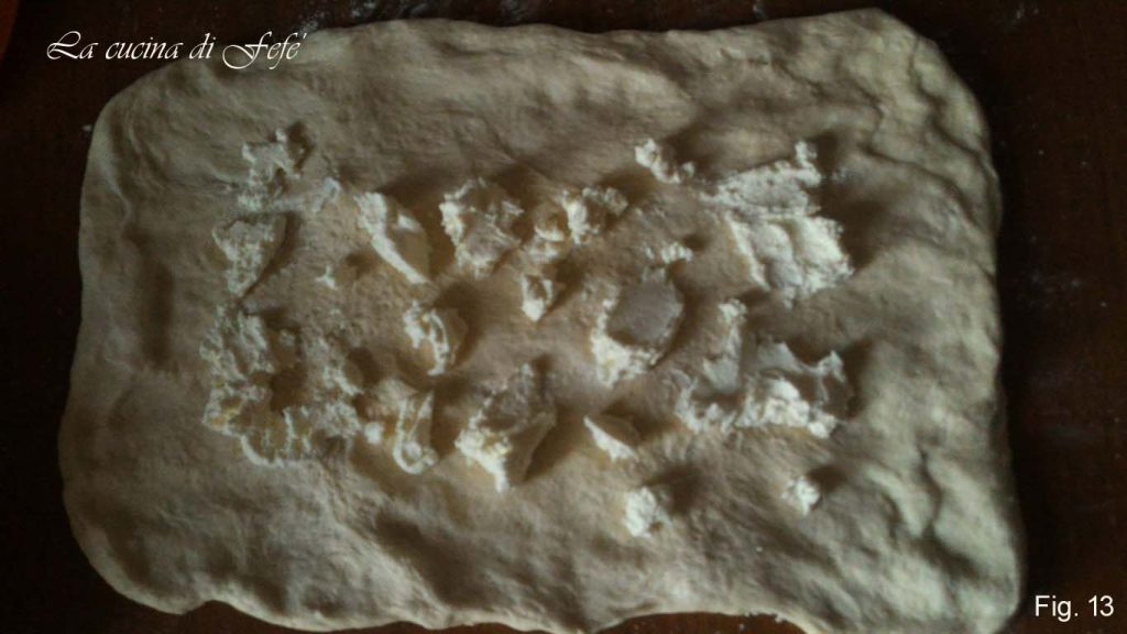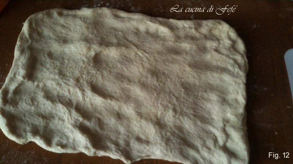 A este punto, extendid la masa, siempre sobre una superficie enharinada, formando un rectángulo (fig. 12).