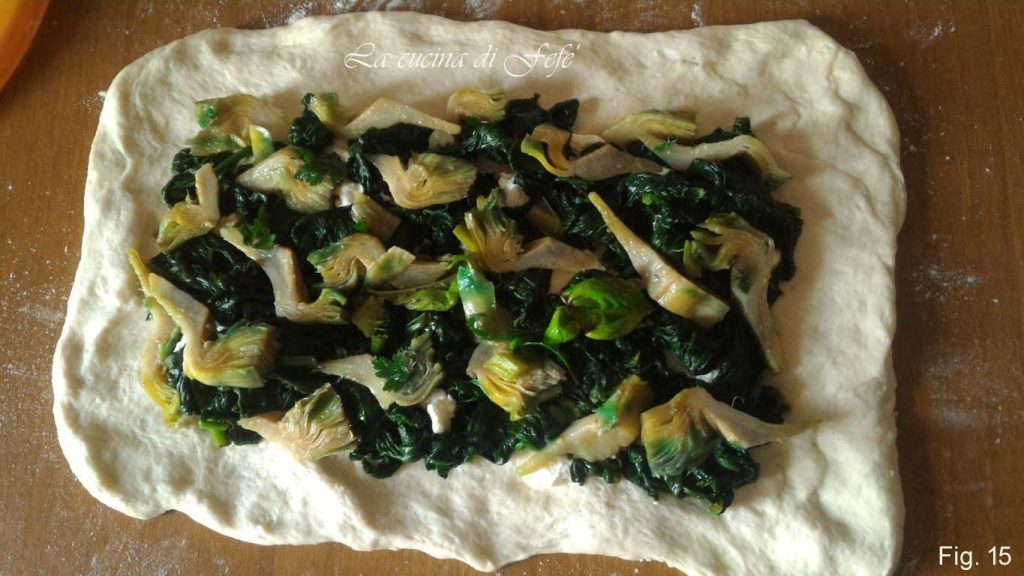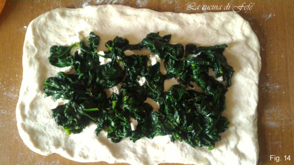 Luego añadid las espinacas previamente escurridas y exprimidas (fig. 14).