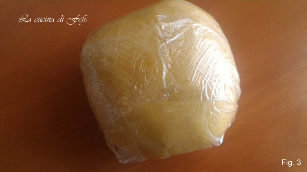 Pon en la nevera por 15′ cubierto con film, luego corta la masa en 4 tiras del lado más largo.