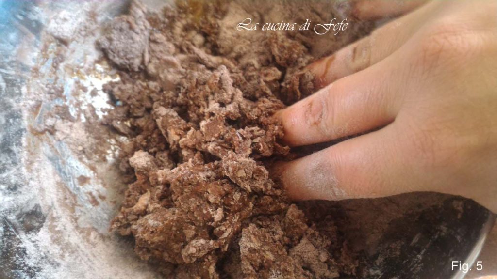 Procede a preparar también la masa de cacao: en otro tazón, tamiza el cacao y mézclalo con la harina. Añade después la mantequilla fría en cubitos.