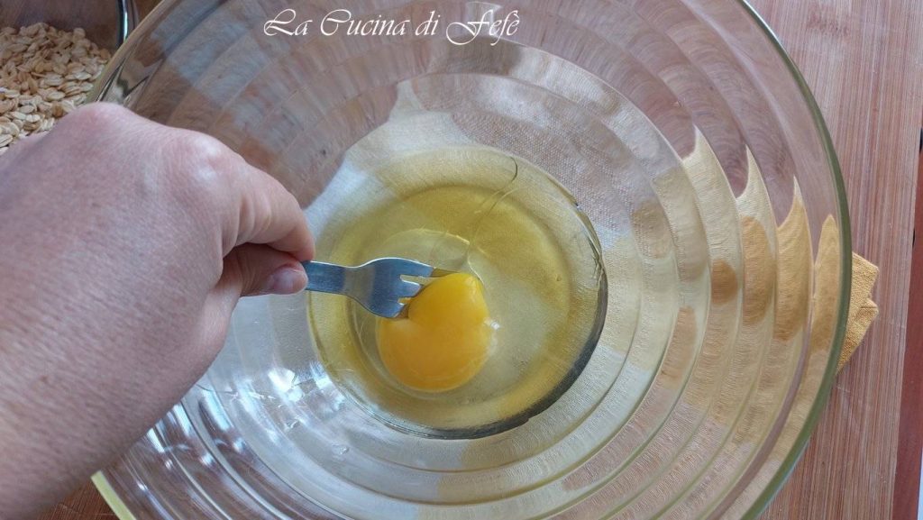 En un bol amplio bate el huevo y el aceite de sésamo con un tenedor para mezclar ambos líquidos.