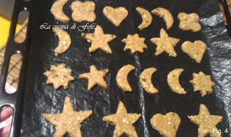 Colocadlas en una bandeja forrada con papel de horno y hornead en horno precalentado a 180°C durante 11′-12′ aprox.; bastará con que los bordes se doren ligeramente (fig. 4).