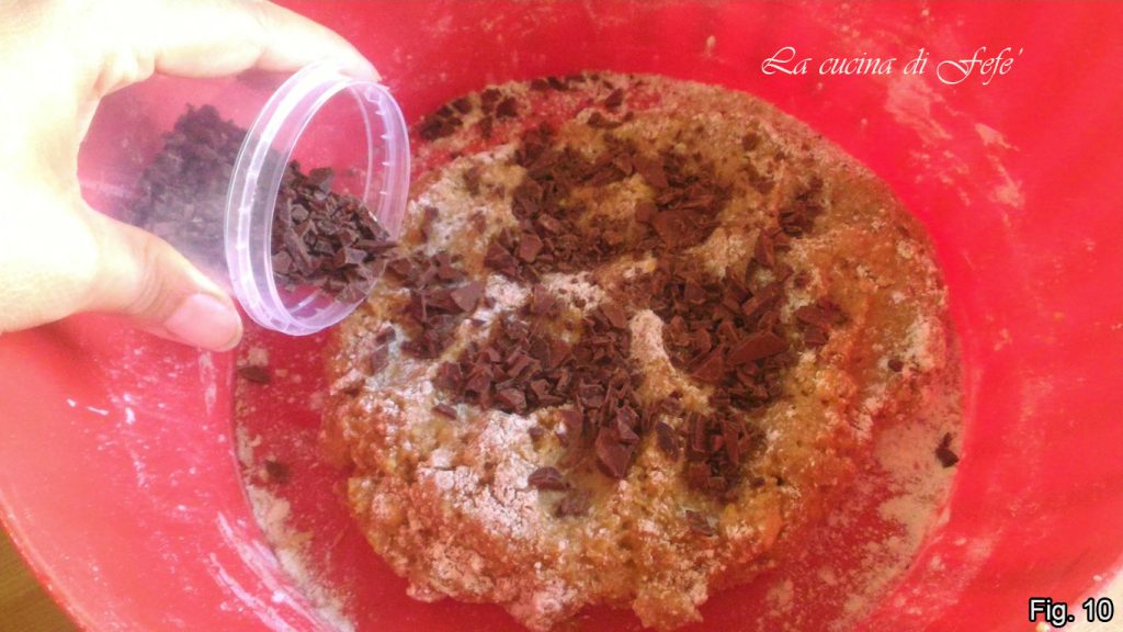 Luego, añade las avellanas picadas a la mezcla de azúcar y harina y añade el café ya frío.