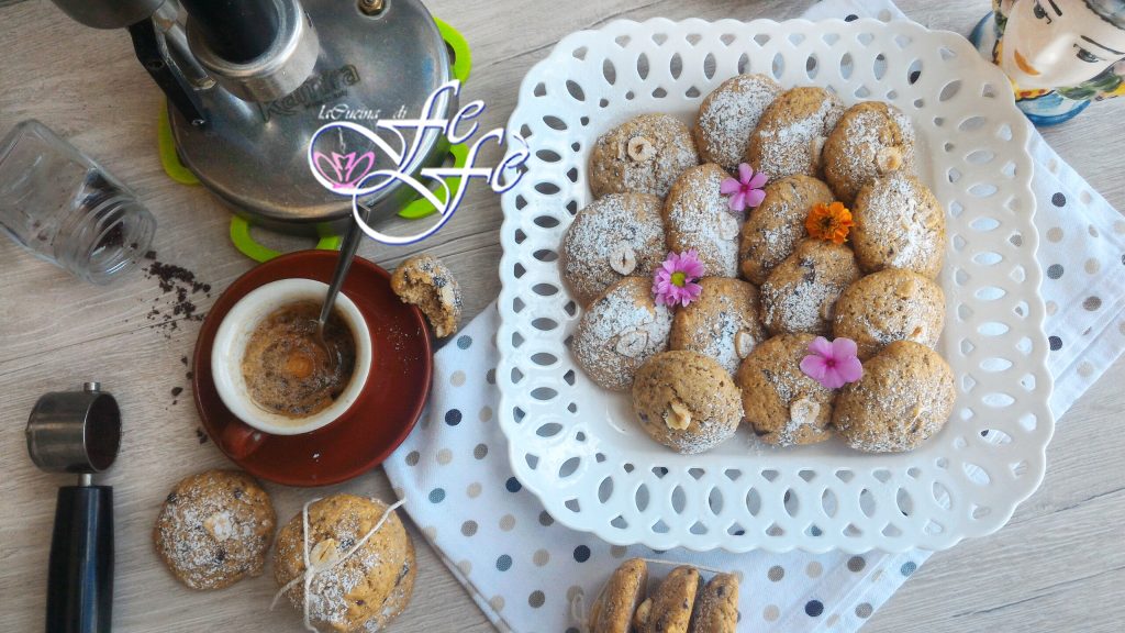 ¡Las tardes otoñales de estas últimas semanas me han transportado de repente a mis tan queridos momentos de té con mis amigas! Me encantaba organizar verdaderos momentos de puro relax, mimando a quienes amaba con una mesa llena de delicias preparadas por mí y una infinidad de infusiones y tés que harían envidiar a un supermercado entero. Muchas charlas, confidencias, risas y agradables horas en compañía, luego ya nada. Durante dos años tuve que suspender este sano y buen hábito, pero ahora finalmente sé que puedo retomarlo como antes. Estas galletas de café, avellanas y chocolate son ese capricho que todos podemos permitirnos por la mañana, para empezar el día con energía, o en el momento del café después de la comida sin remordimientos. Las hice preparando un excelente café espresso con mi inseparable cafetera siciliana, Kamira ¡La llevo conmigo incluso en los viajes y es la mejor elección que podría haber hecho! Preparar café es un ritual atemporal, un símbolo de estatus de nosotros los italianos, una tradición que se perpetúa desde la mañana hasta a veces por la noche. Mejor aún si se acompaña con galletas que recuerdan su sabor y aroma, ¿no creéis? Y de hecho, una vez horneadas, un perfume embriagador y envolvente de café se esparcirá por vuestra cocina y podréis mojarlas en la leche, en el café, en una tisana o picarlas en la merienda. Y lo mejor es que son sin mantequilla! Saludables, deliciosas y aromáticas, ¿qué más se puede pedir?