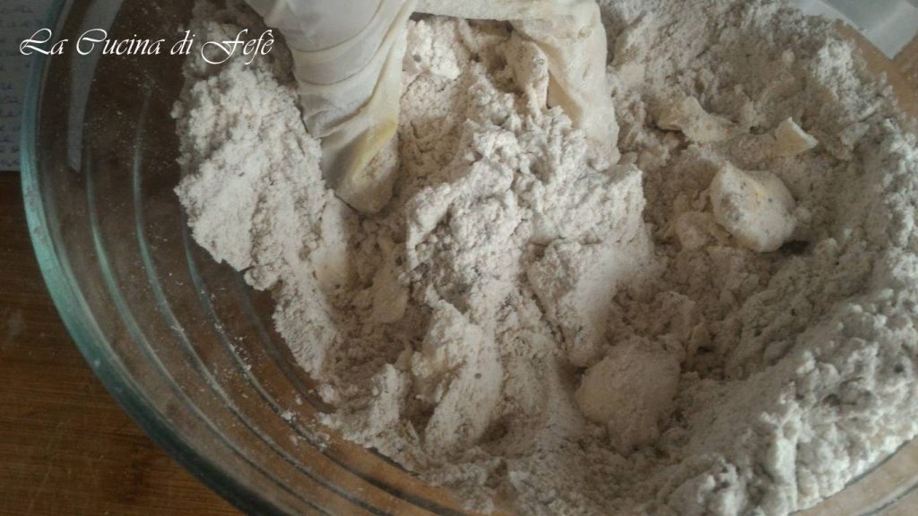 • Comienza a trabajar todos los ingredientes con las manos dentro del tazón hasta formar una mezcla arenosa.