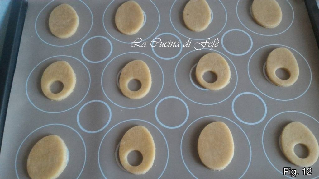 Con un cortador en forma de huevo de 6,5 x 5 cm sacad un número par de siluetas.
