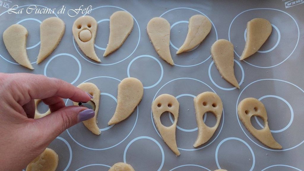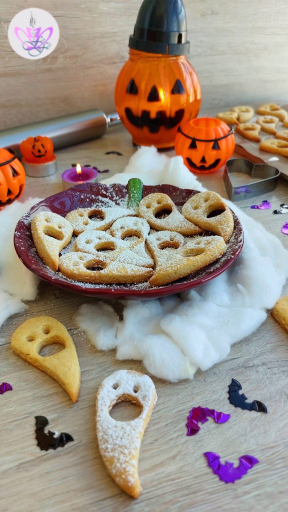 En los últimos años he descubierto un interés por la fiesta de Halloween que antes nunca había tenido, ni pensado en tener, ya que siempre había sido en mi mente una fiesta adoptada que no pertenece a nuestra cultura. Además, demasiado comercial, por lo que poco atractiva a mis ojos. Durante años dejé de lado cualquier posibilidad de crear algo en la cocina que pudiera recordar su significado. Sin embargo, más allá de su naturaleza comercial, esta fiesta ha encontrado su dimensión en el tejido social español. Se ha convertido en una excusa para estar juntos, organizar fiestas, estimular la creatividad de los más pequeños y no solo ellos. Al final, ¿no está bien tomar prestada una tradición si nos regala momentos de diversión, verdad? Así que descubrí lo divertido que es hacer los clásicos y espeluznantes dulces temáticos del célebre lema ‘truco o trato’. Este año, después de arañitas y momias, es el turno de las galletas fantasmitas. Son las galletas de Halloween más virales de la web y he elegido hacerlas con una masa quebrada de almendras similar a la tradicional pero más friable y crujiente. Lo importante es dejar reposar la masa en el frigorífico al menos 2 horas, o incluso más antes de usarla, porque marcará la diferencia al estirarla. Se pueden hacer simples, solo con una espolvoreada de azúcar glass en la superficie y ya así son impresionantes, o aún más deliciosas rellenándolas con crema de avellanas. Según esto, cambiará el grosor de las galletas y el número total. ¡A los niños les encantarán, serán súper vistosas y perfectas para alegrar sus momentos de fiesta! ¡Desaparecerán al instante!