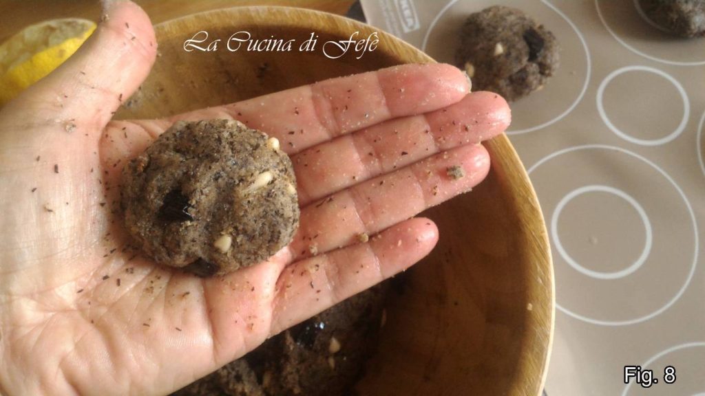 • Distribuid las galletas sobre una bandeja con papel de horno y coced a 175°C durante aproximadamente 11′-12′. No deben dorarse mucho. Apagad el horno, sacadlas y dejadlas templar en una rejilla (fig. 9).