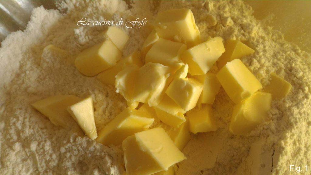 En un tazón grande, trabaja la mantequilla bien fría de la nevera cortada en cubos con la harina.