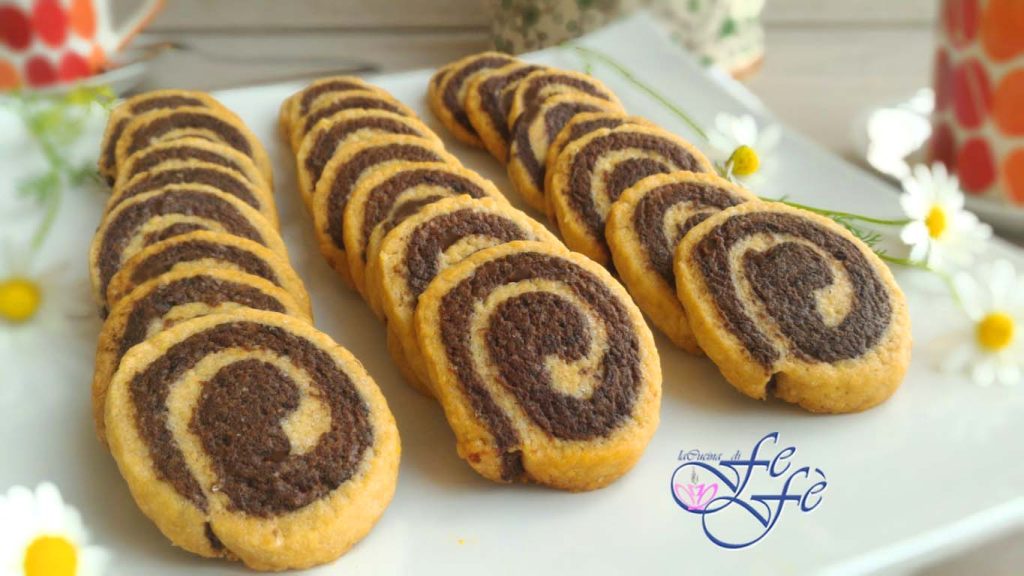 ¡La moda de las galletas bicolor continua! Después del éxito de las clásicas galletas de ajedrez, te presento una versión aún más fácil de preparar, escenográfica y de sabor irresistible: las galletas remolino (o «de espiral») con un efecto increíblemente hipnotizante, ¿no te parece?
