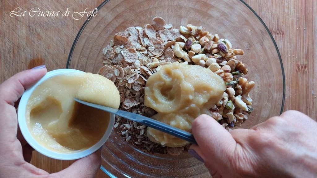 ¡Nunca volveré a comprar la granola del supermercado! Después de probar la que preparo en casa con los ingredientes que elijo yo, es inimaginable pensar en comprar las industriales llenas de aceites hidrogenados, jarabe de glucosa, azúcares, grasas saturadas y otros ingredientes de baja calidad. Aunque la granola es potencialmente saludable, de hecho, los aceites vegetales y las mantecas elegidas para ayudar a unir los ingredientes o agregar sabor, pueden generar calorías en exceso. ¡Y todo esto en detrimento de la salud! Prepararla en casa, en cambio, garantiza una opción más genuina y cuidada para reducir o eliminar los azúcares y las grasas añadidas. A diferencia de las alternativas comerciales, donde el azúcar o los edulcorantes a menudo son de los primeros ingredientes en la lista, aquí al contrario, serían superados por avena, espelta, frutos secos y semillas oleaginosas. En resumen, la granola puede ser un alimento nutritivo y saciante, siempre que se haga una buena elección. Y aquí está mi propuesta sin azúcares añadidos, salvo los naturales de la fruta, en este caso manzana y plátano reducidos a puré. ¡Una concentración de virtudes con nutrientes importantes para una dieta equilibrada y saludable! Perfecta para un desayuno fit para disfrutar con yogur, con fruta fresca de temporada, en leche o para enriquecer tu porridge. O bien como snack de media tarde para picar incluso fuera de casa. Los expertos recomiendan una porción de aproximadamente 40 gramos al día, equivalente a unos 4 cucharadas. Esta cantidad permitiría disfrutar de sus beneficios sin exceder la ingesta calórica diaria, especialmente para aquellos que siguen una dieta controlada o buscan mantener su peso.