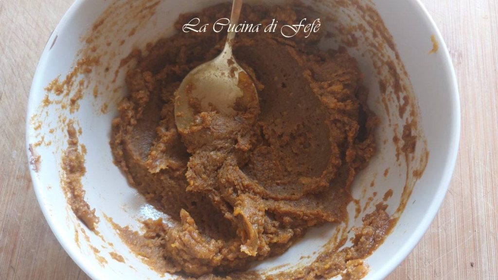 Completa con el puré de calabaza especiado y mezcla muy bien para que todos los ingredientes se amalgamen completamente.