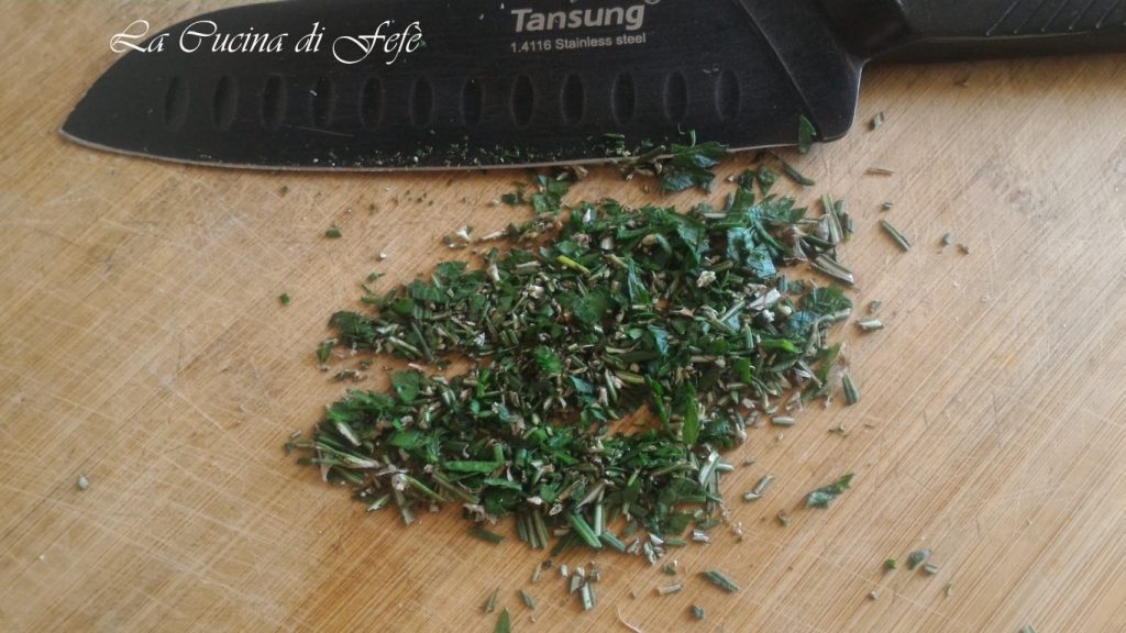 Aparte, pica muy finamente con un cuchillo el perejil y el romero deshojados.
