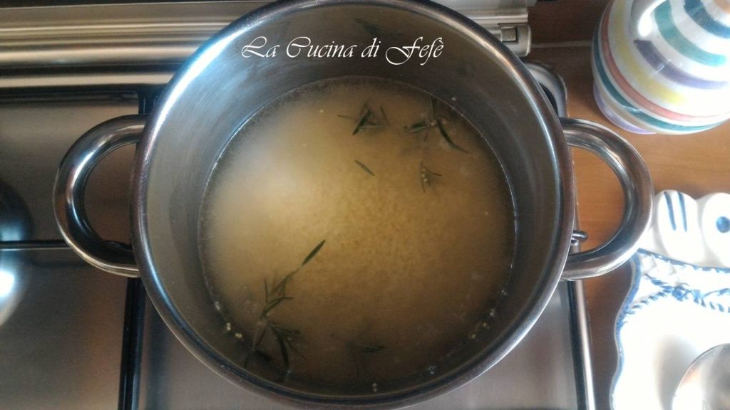 • Cózcanlo según el método de cocción por absorción, cubriéndolo con el doble de agua respecto a su peso, por lo que en este caso 350 ml de agua salada, llevándolo a ebullición y apagando el fuego después de un par de minutos.