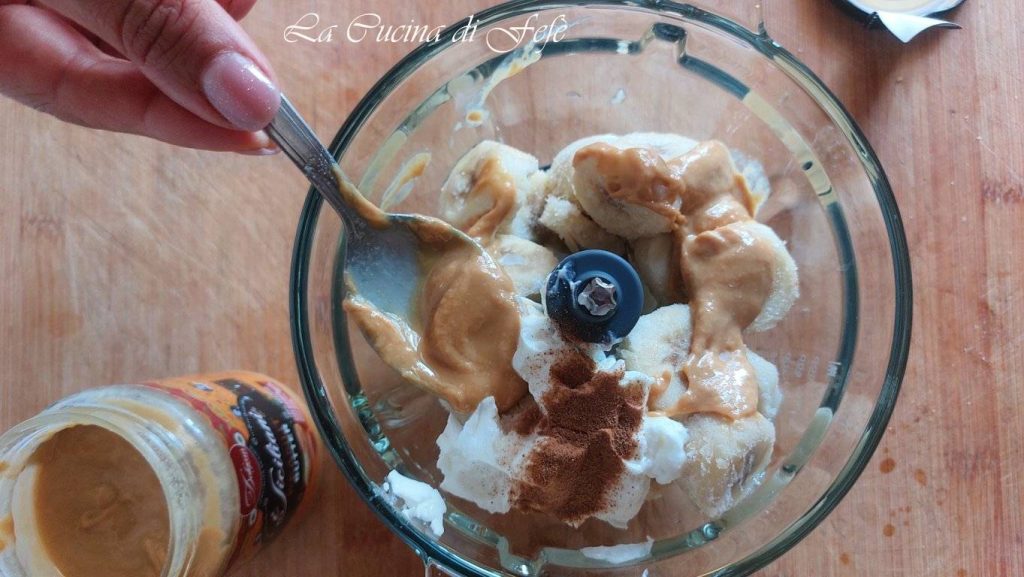 Sirve el helado inmediatamente en cuencos bien fríos previamente puestos en el congelador y vuelve a ponerlo en el congelador un máximo de 30′, especialmente si hace mucho calor, antes de disfrutarlo. Decora con granillo de cacahuete o frutos secos, chocolate picado y una cucharadita por cabeza de mantequilla de cacahuete.