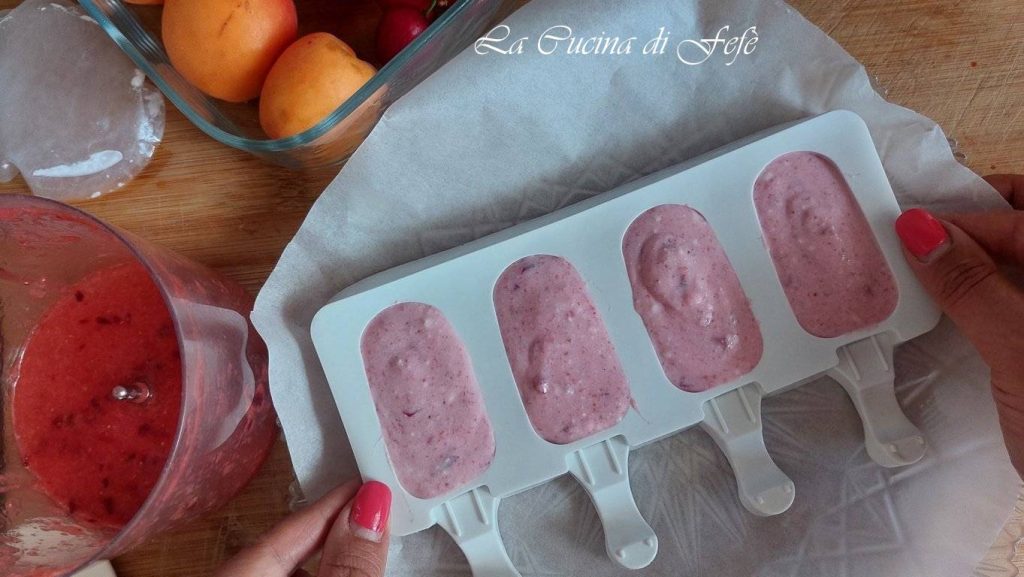 Los frutos rojos como fresas, cerezas, grosellas, frambuesas, etc. como todos saben, son frutas típicas de esta época del año, aunque quizás es menos conocida su riqueza en polifenoles, Vitamina C, potasio, ácido fólico y fibras, que las hacen fuertemente antioxidantes. Para introducirlas en tu dieta alimenticia bastará con consumirlas frescas o utilizarlas en tus recetas. Estos helados por ejemplo, están diseñados precisamente para garantizarte una merienda sana y deliciosa sin los excesos de los helados tradicionales. De hecho, son sin azúcares añadidos y con poquísimas grasas saturadas, particularmente dañinas para el organismo, ya que aquí la nata, a menudo presente en este tipo de preparaciones, es reemplazada por la ricotta, mucho más rica en nutrientes y con un alto contenido proteico que la haría una opción excelente. Se preparan realmente en poquísimos minutos y podrás disfrutarlos cada vez que tengas ganas de algo dulce sin el riesgo de picos glucémicos. Son por lo tanto apropiados para toda la familia, incluso para tus niños o cualquiera que necesite seguir una dieta más restrictiva en términos de calorías o intolerancias.