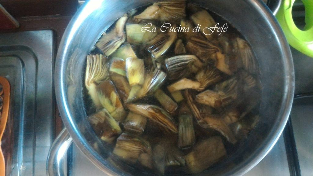 Enjuagad las alcachofas bajo el agua corriente y escaldadlas durante unos 8′ -10′ en una olla con abundante agua salada.