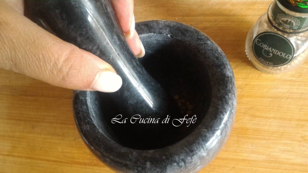 Mientras tanto, machacad las semillas de cilantro en un mortero hasta reducirlas a polvo.