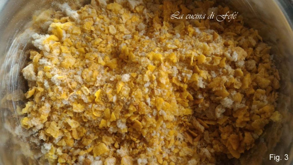 Finalmente pásalas por la mezcla de miga y corn flakes preparada anteriormente.