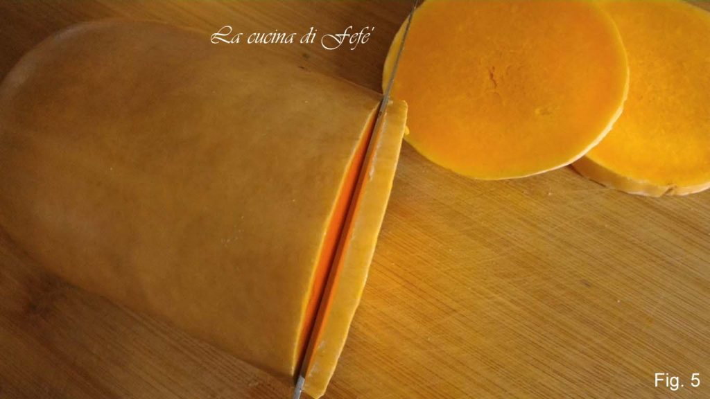Corta la media calabaza en rodajas de 1/2 cm de grosor.