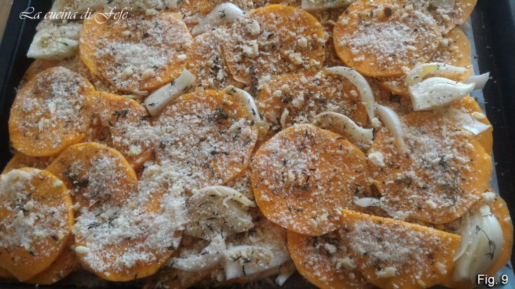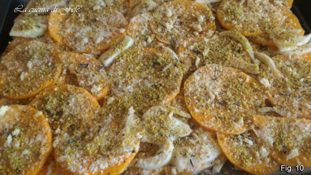 • Formad finalmente una última capa con los restos de calabaza y hinojo y condimentad con el resto de los ingredientes.