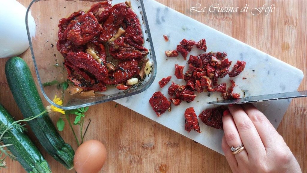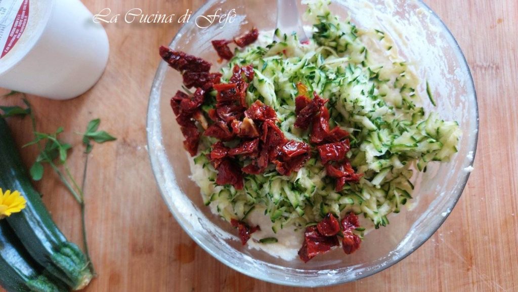 • Añade por último los tomates secos picados y los calabacines rallados y mezcla bien.