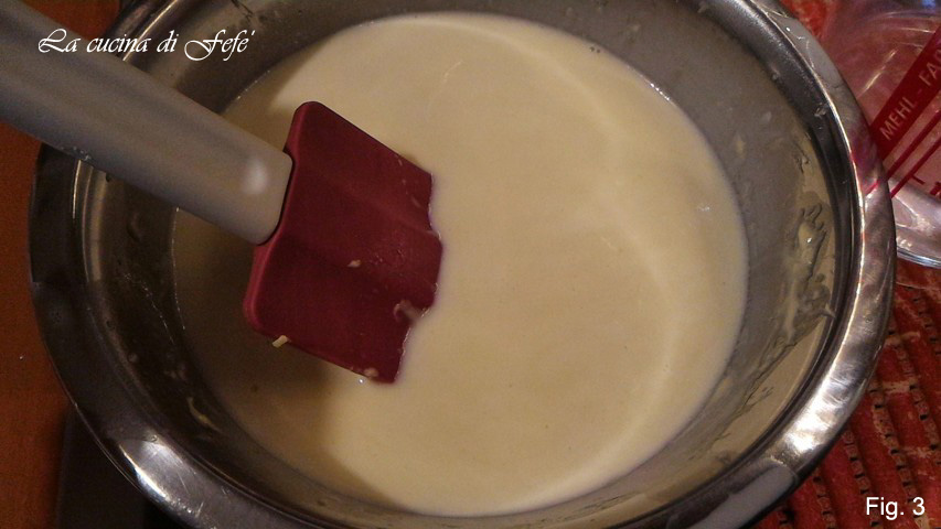 • Finalmente, como último paso, vierte la nata líquida fría de la nevera dentro y mezcla bien con una batidora o espátula (fig. 3).