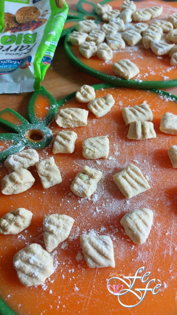 Hoy quiero dejaros una idea rápida y súper fácil para preparar unos ñoquis alternativos respecto a los clásicos con patatas. Se trata de los ñoquis de calabacín, un primer plato delicioso y sencillísimo preparado con calabacines crudos triturados, por lo que es perfecto para cuando tienes invitados inesperados o poco tiempo para dedicar a los fogones. En pocos pasos, de hecho, llevarás a la mesa un plato ligero, sabroso, económico y a prueba de nutricionista. A pesar de la extrema facilidad de realización, para un buen resultado es necesario tener una sola precaución: añadir la harina poco a poco, ya que depende mucho de cuánta agua de vegetación hayan retenido los calabacines. A estos ñoquis podrás combinar el condimento que más te guste, ya sea simplemente con mantequilla y salvia, con una salsa de tomate fresco o, como hice yo, con un pesto de rúcula que os mostraré en los próximos días y que realicé igualmente rápido en el mismo mixer. ¡Así que deja volar la imaginación y ponte el delantal!