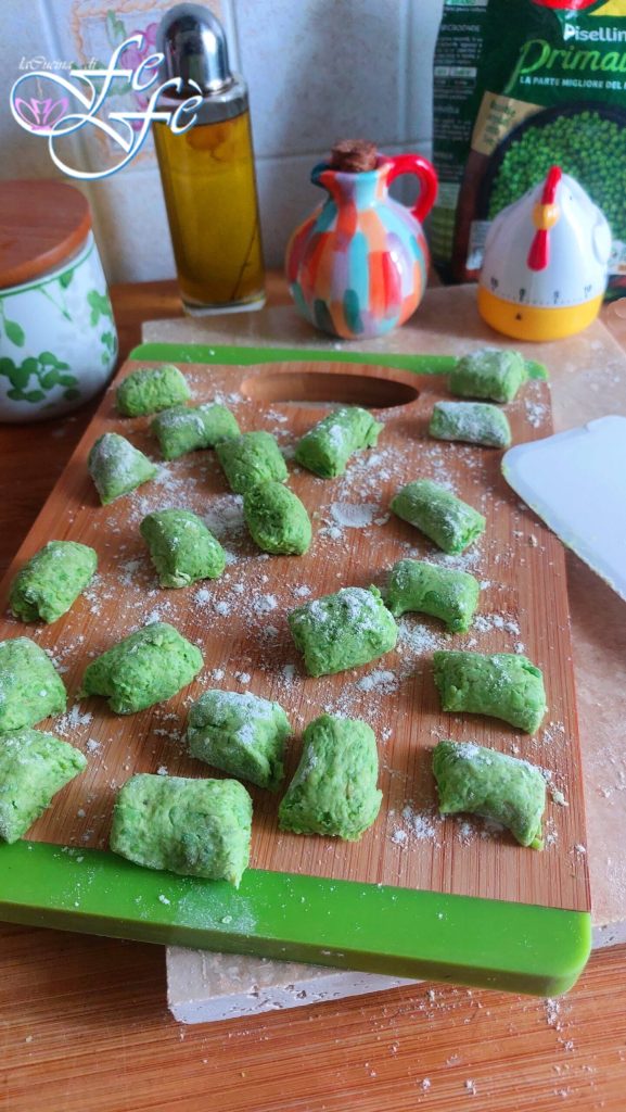 Después del éxito de los ñoquis de frijoles borlotti, no podía dejar de experimentar para vosotros otras versiones, obviamente a base de legumbres, como los de guisantes, ¡y esto es solo el comienzo! Como bien sabéis, os lo repito continuamente, las legumbres son una fuente de minerales y vitaminas para nuestro organismo. Los guisantes, en particular, son legumbres muy digestibles y útiles para estabilizar la glucosa en sangre y los niveles de colesterol. Además, son ricos en fibra y bajos en calorías, con un alto contenido de carbohidratos, potasio, fósforo, además de vitamina C y K y ácido fólico. Introducirlos más a menudo en nuestra alimentación es realmente una opción saludable, pero a veces faltan ideas para disfrutarlos al máximo, y aquí os vengo a ayudar yo. Estos ñoquis de guisantes son una solución fácil para llevar a la mesa un primer plato en estilo vegano, obviamente luego dependerá también de cómo los condimentos, y, ya veréis, ¡serán un verdadero cambio en la cocina! Además, se preparan a una velocidad impresionante, solo unos minutos para escaldarlos y luego todo al mixer. La masa se trabaja muy cómodamente con una espátula así que ni siquiera os mancharéis las manos. Su dulzura se combinará perfectamente con cualquier condimento que decidáis usar, así que arremangaos y preparadlos conmigo!