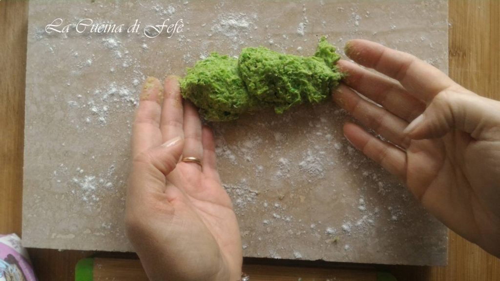 Enrolladlo, alargándolo, con las manos como haríais con los ñoquis clásicos.