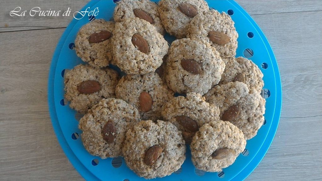 Con la mezcla de harina y azúcar restante, espolvorea la superficie de cada galleta y hornea en un horno precalentado a 170°C durante 13» aproximadamente en modo estático, luego baja a 100°C y deja secar durante otros 5-6′. Deberán dorarse solo en la base y ligeramente en los bordes.