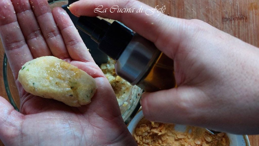 • Rocía cada palito con algunas pulverizaciones de aceite que ayudarán a que el empanado se adhiera mejor.