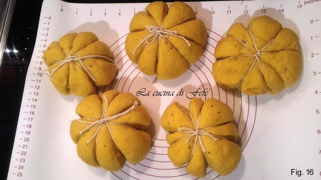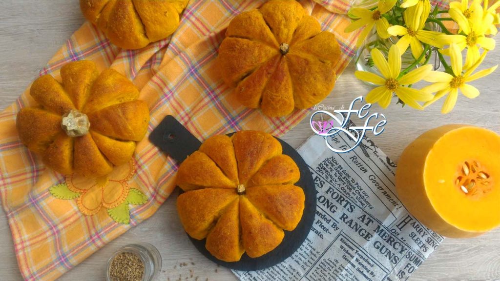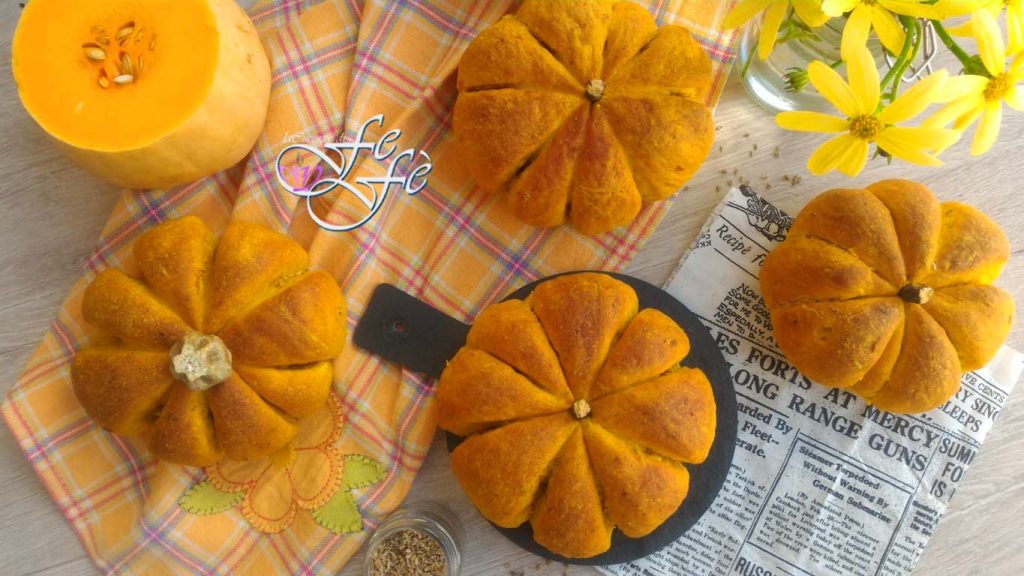La receta de estos maravillosos panecillos de calabaza la comparto con gran alegría después de al menos un año de espera para hacerlos. No sabría decir por qué tardé tanto en decidirme, quizás distraída por otros proyectos o simplemente porque estaban demasiado de moda para ser la enésima en replicarlos. Será la combinación de ambos factores lo que me hizo desistir, pero admito que estaba bastante tentada y el efecto escenográfico me gustaba mucho. Pero lo que no sabía es que son increíblemente deliciosos y ahora me muerdo las manos por no haberlo intentado antes. Estudiando un poco, logré encontrar el equilibrio adecuado de las dosis que, ni que decirlo, personalicé según mis gustos y necesidades. Sin demasiada falsa modestia, creo que he conferido en conjunto un regusto fabuloso, un sabor en el paladar dulce y al mismo tiempo balsámico, realmente único y especial. Todo esto gracias al uso de dos ingredientes que añadí de inspiración en el momento de ponerlos en práctica y de los que no me arrepiento en absoluto, ¡de hecho, me doy solita las felicitaciones! Hace tiempo, habiendo recibido como regalo una raíz seca de regaliz en la farmacia debajo de casa, pensaba que lo único que podría hacer era infusionarla en agua caliente para hacer buenas infusiones. Pero me equivocaba, podía conferir un sabor especial a mis dulces y en este caso a mis panecillos. El anís complementa agradablemente este aspecto aromático, que con la calabaza se combina increíblemente. Una vez horneados, un aroma envolvente hará acto de presencia en la cocina para luego inundar toda la casa. La consistencia ligeramente quebradiza por fuera y suave por dentro gracias a la pulpa de calabaza, los hace irresistibles. Sin embargo, si no tienes tiempo o ganas de aventurarte a crear estas formas escenográficas, no te preocupes, ¡puedes preparar perfectamente panes redondos simples! Ciertamente el efecto visual se perderá, pero sin duda no el sabor, de los mejores que he probado jamás.