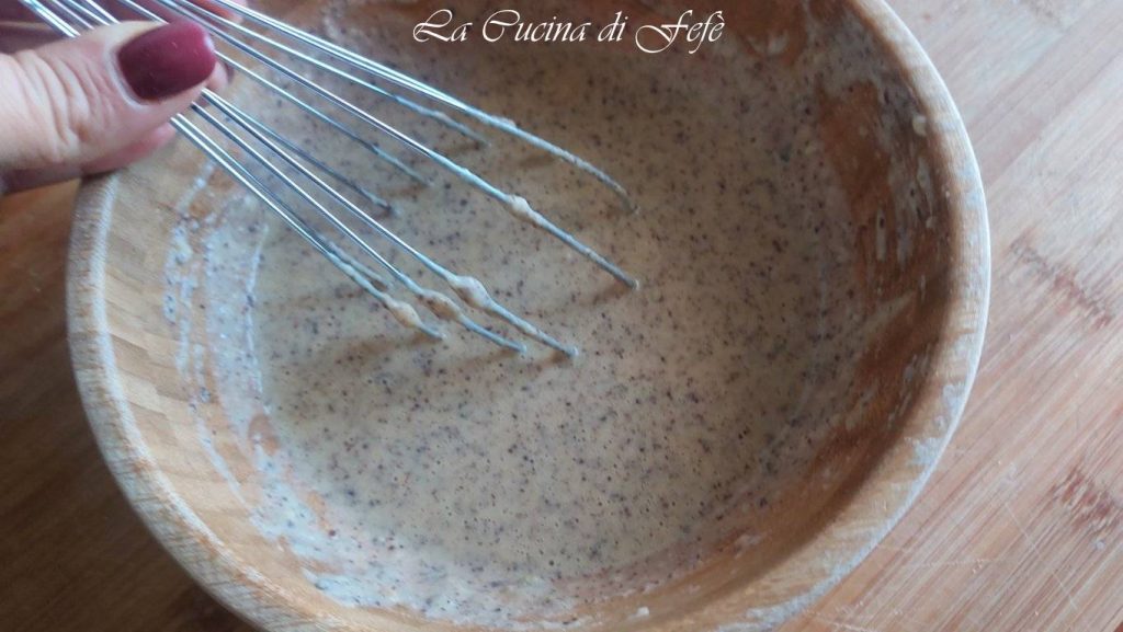 En un bol, bate el huevo junto con el jarabe de agave con la ayuda de un batidor de mano.