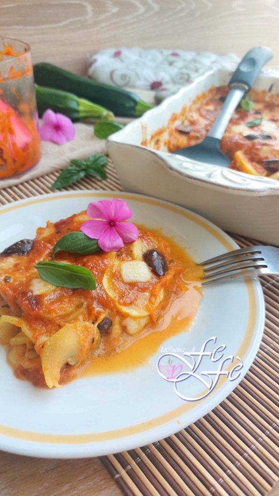 ¿Qué rica es la parmigiana de berenjenas? Estamos acostumbrados a disfrutarla tanto en su versión clásica con las berenjenas rigurosamente fritas, como en la versión más ligera, con las berenjenas cocidas a la parrilla antes de ser horneadas. Pero si pensáramos en sustituir las berenjenas con calabacines cortados en rodajas y en lugar de la salsa de tomate condimentamos todo con una densa y aterciopelada crema de pimientos? Sin duda obtendríamos una parmigiana alternativa realmente sabrosa y aromática. Será realmente fácil realizarla, sobre todo porque en esta receta los calabacines se agregan en crudo. Obviamente deberán cortarse muy finamente, pero el resultado será para mojar pan, ¡créeme! Yo utilicé dos tipos de queso, la mozzarella y el asiago, alternándolos en las cuatro capas, pero tú también podrás decidir por uno solo entre ambos o variar con provola dulce o picante, ¡por qué no! Seguro descubrirás, bocado tras bocado, una combinación inconfundible de sabores, ¡que hará este acompañamiento vegetariano muy atractivo y original! También será tan saciante y satisfactorio que podrás presentarlo en la mesa incluso como segundo plato o aperitivo en un buffet para servir frío, cortado en cuadritos. ¡Podrás disfrutar de tu parmigiana de calabacines en un picnic, una excursión, en la playa e incluso en la oficina!