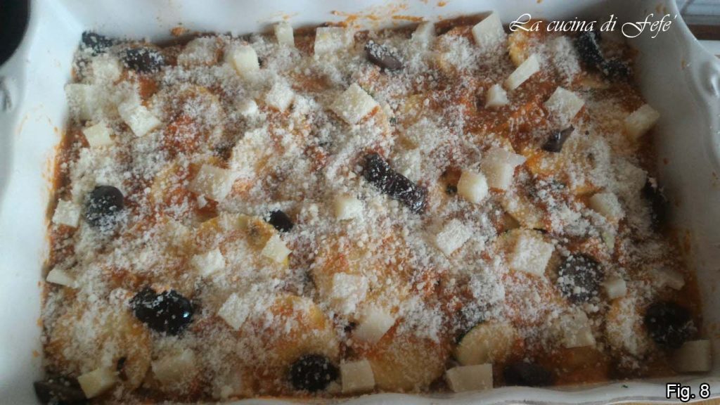 Procede a montar otras tres capas, alternando la mozzarella con el asiago, siempre cortado en dados, hasta agotar los ingredientes. Hornea a 190°C durante unos 35′. No obstante, haz la prueba del tenedor: si al clavar los dientes, estos penetran con facilidad en profundidad, significará que la parmigiana está lista, de lo contrario, continúa la cocción.