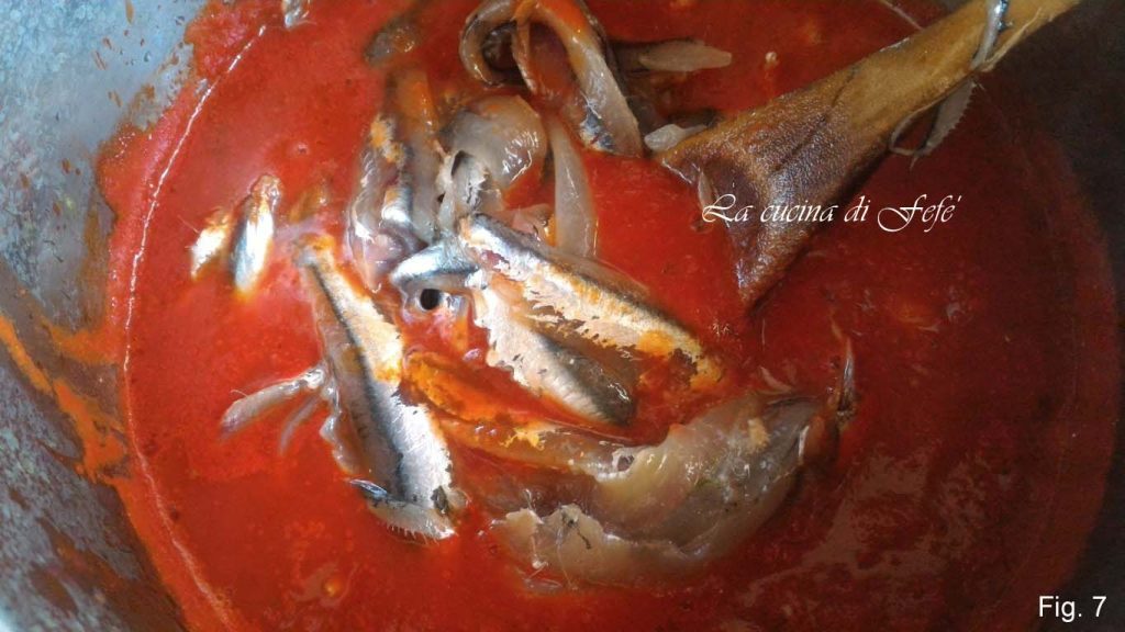 Luego añade las anchoas, removiendo cuidadosamente para no deshacerlas.