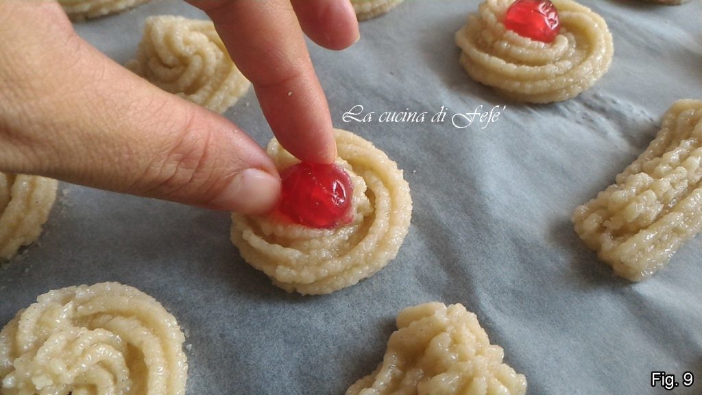 Últimamente, al mirar en mi blog la serie de recetas dedicadas a mi querida tierra, me di cuenta de que aún no había propuesto estos pastelitos de pasta de almendras, es decir, unas galletitas a base de almendras realmente deliciosas. ¡Es increíble que aún no hubiera publicado la receta a pesar de haberlas preparado ya el año pasado! Pero luego, ya se sabe, en la cabeza nacen muchas otras ideas y lo que se había planeado hacer, a menudo termina en el olvido. Así que aquí estoy finalmente para ofrecerles estos maravillosos dulces tradicionales de la pastelería siciliana. En realidad, estos dulces ahora se realizan también en otras regiones del sur de Italia y en muchas formas diferentes. Sin embargo, los verdaderos y originales son los rizos de pasta de almendras con encima una deliciosa cereza confitada o en la versión con una almendra entera sin pelar. Se preparan muy fácilmente, solo será necesario seguir todos los consejos que dejo en la receta y tener un poco de destreza con la manga pastelera para hornear unas galletas realmente irresistibles. ¡Serán perfectas para acompañar el té o como dulce de final de comida con el café! Además, son también gluten free, pruébenlas también ustedes, ¡se enamorarán!