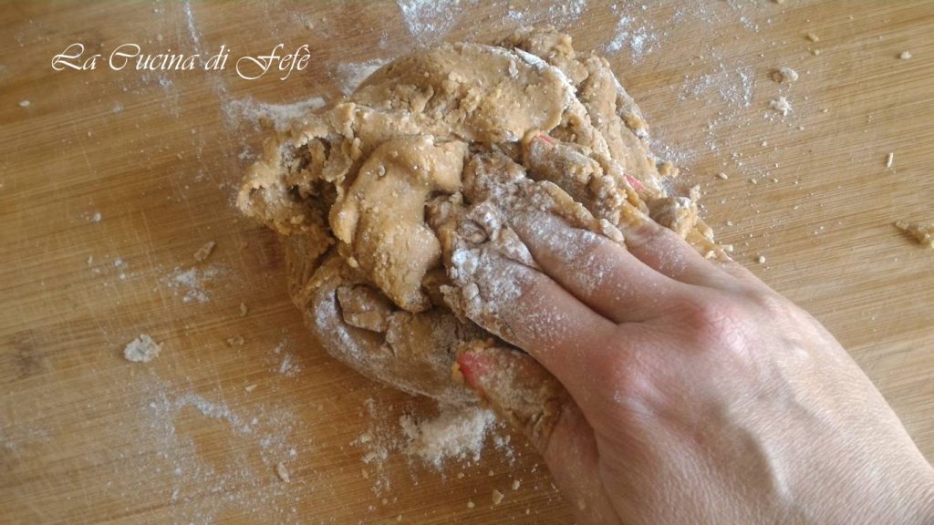 • Mientras tanto, ocupad de la masa siguiendo los pasos de esta receta. Trasladad la masa a una superficie y trabajad la masa quebrada al aceite hasta formar un bloque homogéneo.